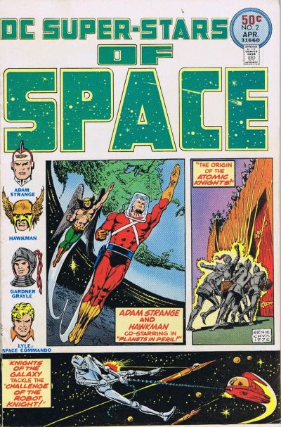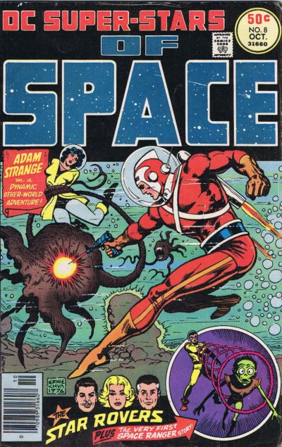 When I was most actively reading comics in the 1970’s and early 1980’s comics with a space-bound characters or characters in science-fiction stories often piqued my interest. In the 1970’s, the various reprints of the adventures of Adam Strange, The Space Ranger and Cryll, The Atomic Knights, and Captain Comet (among others) were favorites of mine. DC had begun a reprint-line of comics in 1976 called DC Super-Stars. Issues 2, 4, 6, and 8 of this title all had the sub-heading of Space. I picked up all four of these from the spinner racks when they were first published. This type of comic and the predecessor line of 100-Page-Super-Spectacular comics were very entertaining during my elementary school years.